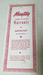 15 MAYTAG ® LAUNDRY WARRANTY. LIMITED WARRANTY. For one year from the date of purchase, when this major appliance is operated and maintained according to instructions attached to or ... Read Full Source